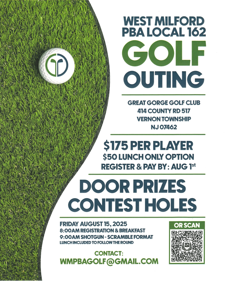 Join us for a fun-filled day of golf, community, and support at the West Milford PBA Local 162 Golf Outing!
